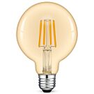Deze dimbare filament Globe 95 LED lamp heeft een extra hoge decoratieve waarde. Niet alleen vanwege de grote maat van de globe (Ø 95mm) maar juist ook door de extra warme, sfeervolle kleur die de lamp afgeeft. Vervangt een 30W gloeilamp, echter verbruikt deze LED variant slechts 4 Watt. Perfect dimbaar met een LED dimmer.