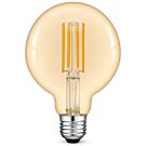 Deze LED filament G95 lamp heeft een prachtig design en gelijkwaardig aan de look van een grote bollamp. De grote maat van de globe (Ø 95mm) maakt de LED lamp van hoge decoratieve waarde. Zowel de amber kleur van het glas en de extra sfeervolle lichtkleur (1800K) als de lichthoek (320°) zijn vrijwel gelijk aan de te vervangen G95 gloeilamp.